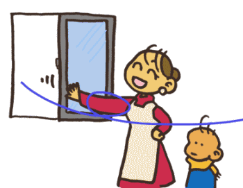 病原体(びょうげんたい)をおうちにもってかえってきて、パパやママにうつさないように、手をあらってうがいしてちょうだいな。 ![]() 病気になったら、おじいちゃんおばあちゃんのところに、新年(しんねん)の挨拶(あいさつ)にいけないわよ。 |