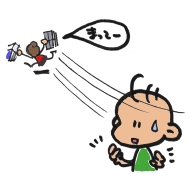 え〜〜、そんなのだめだよ〜〜。 わかった!!ぼく、今日から、ティッシュをむだにしない。 |