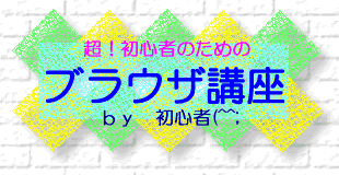 | ※おことわり(^^;) このページは超・初心者様向けに作られております。ですので、インターネットに詳しい方にはむきません(^^;。このページの文章で、わかりやすく説明するために、かなり不適切な表現をしている部分もあるかと思いますが、その点はご了承くださいm(__)m |